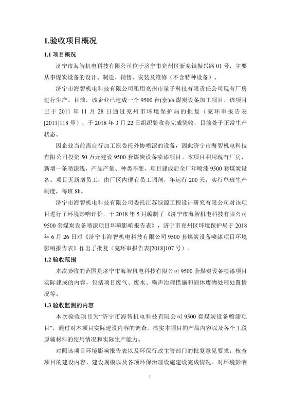 9500套煤炭設(shè)備噴漆項(xiàng)目竣工環(huán)境保護(hù)驗(yàn)收監(jiān)測(cè)報(bào)告