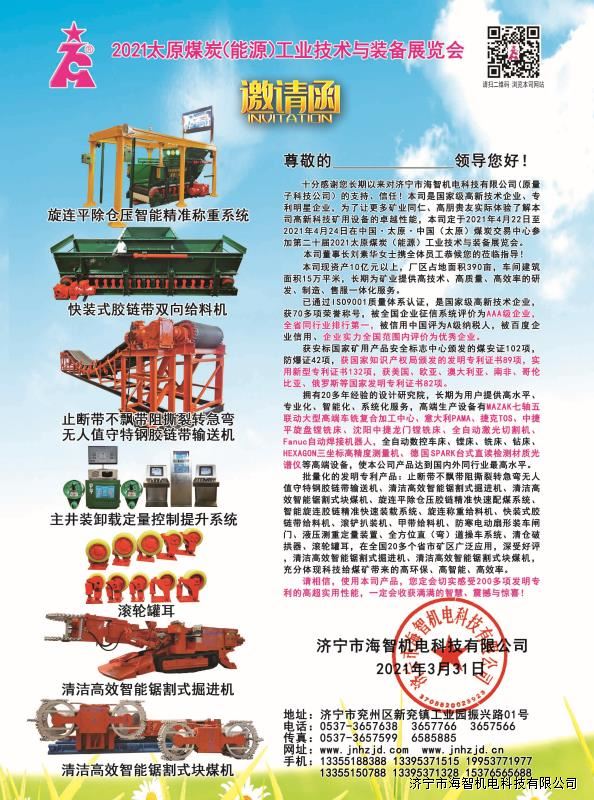 > 邀請(qǐng)函:第二十屆2021太原煤炭(能源)工業(yè)技術(shù)與裝備展覽會(huì)